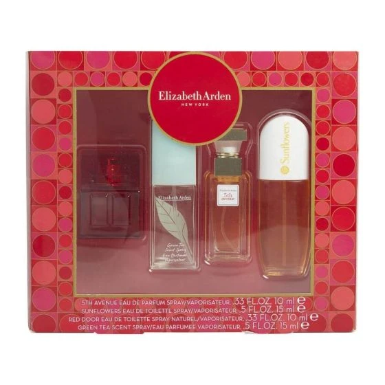 Set includes:- Red Door Eau De Toilette Spray .33 oz, Green Tea Eau De Parfum Spray 0.5 oz, Fifth Avenue Eau De Parfum Spray .33 oz, Sunflowers Eau De Toilette Spray .5 oz.