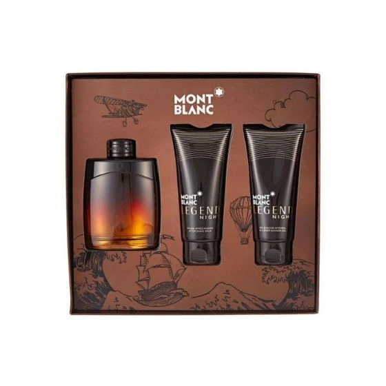 Set includes:- Eau De Parfum Spray 3.3 oz, After Shave Balm 3.3 oz, All Over Shower Gel 3.3 oz.