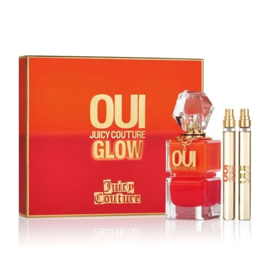 Set includes:- Oui Glow Eau de Parfum Spray 3.4 oz, Oui Glow Eau de Parfum Travel Spray 0.33 oz, Oui Eau de Parfum Travel Spray 0.33 oz.